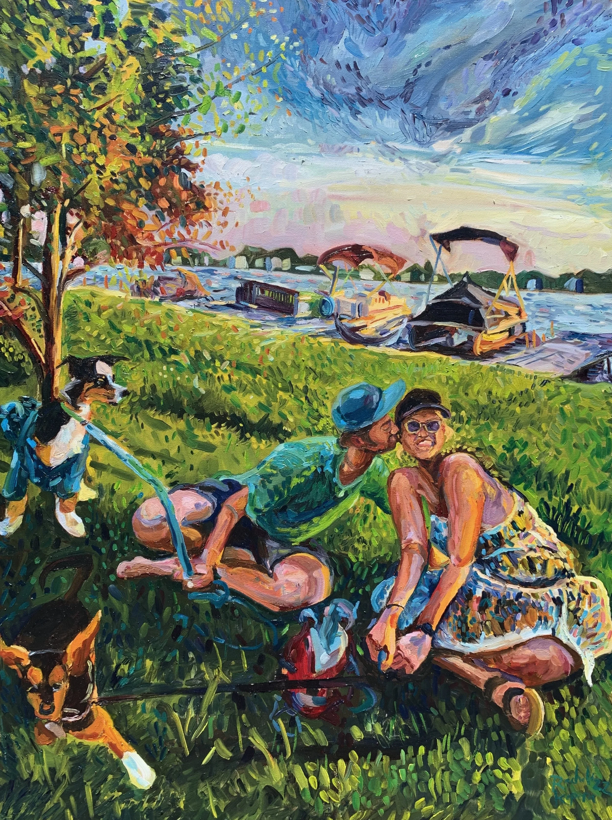 I couldn't be happier with the two beautiful pieces Rachel did based on a compilation of photographs I provided of a cherished family location. She suggested doing a smaller painting prior to starting the larger piece to ensure we were on the same page, and was receptive and professional about my feedback, beautifully incorporating my suggestions into the larger piece. The art was packaged securely and shipped safely from her studio in California to our home in Kansas City. The entire commission process was smooth from start to finish, and the two paintings now hanging in our home are simply stunning.